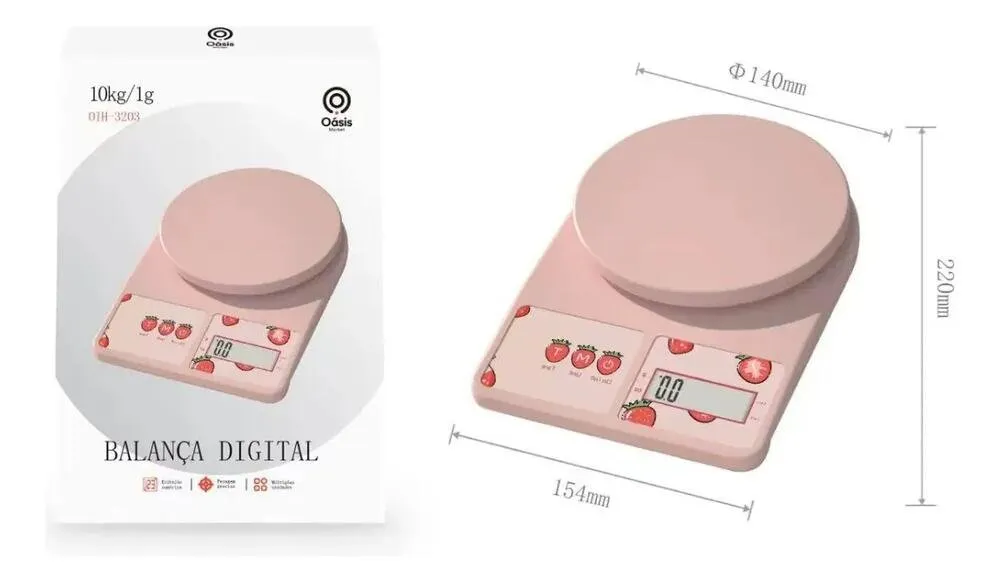 A Balança Digital de Cozinha Eletrônica Rosa é prática, moderna e altamente precisa, perfeita para quem busca controle e eficiência na pesagem de alimentos e ingredientes. Com capacidade máxima de até 10 kg e graduação de 1 g, permite medições confiáveis para receitas culinárias, dietas, controle alimentar e uso doméstico em geral.
