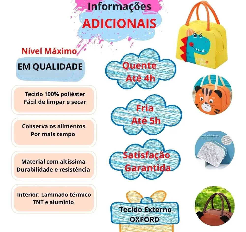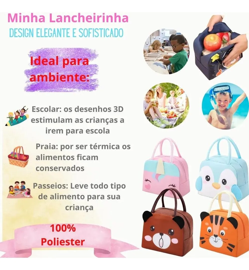 A Bolsa Térmica Lancheira Marmita Nécessaire de Bichinhos KAPBOM – KA-7576 é perfeita para quem busca praticidade, organização e um design divertido. Com estampa de bichinhos, ela agrada crianças e adultos, sendo ideal para escola, passeios, viagens e uso diário.