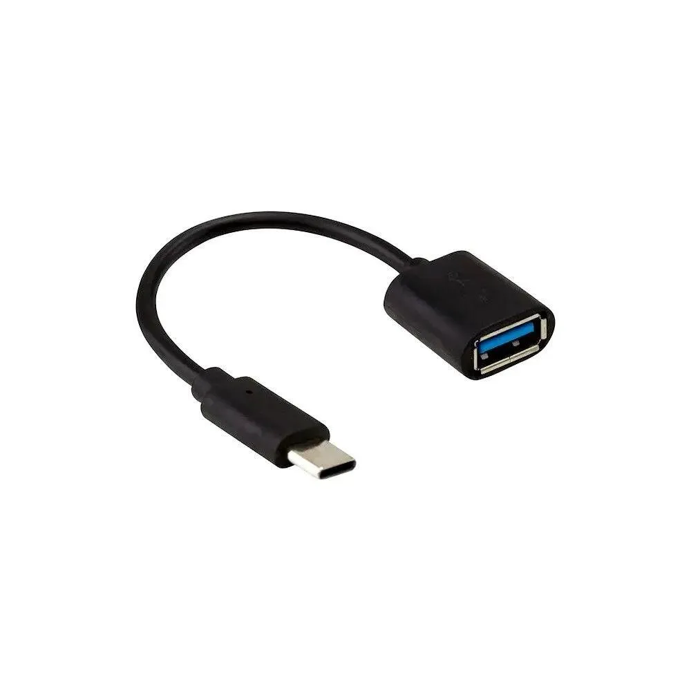 Cabo conversor desenvolvido para adaptação de conexão entre dispositivos eletrônicos compatíveis, possuindo conector USB Tipo C em uma extremidade e conector USB padrão na outra.