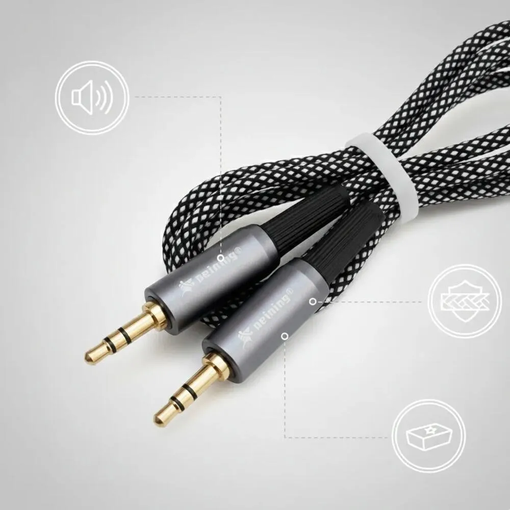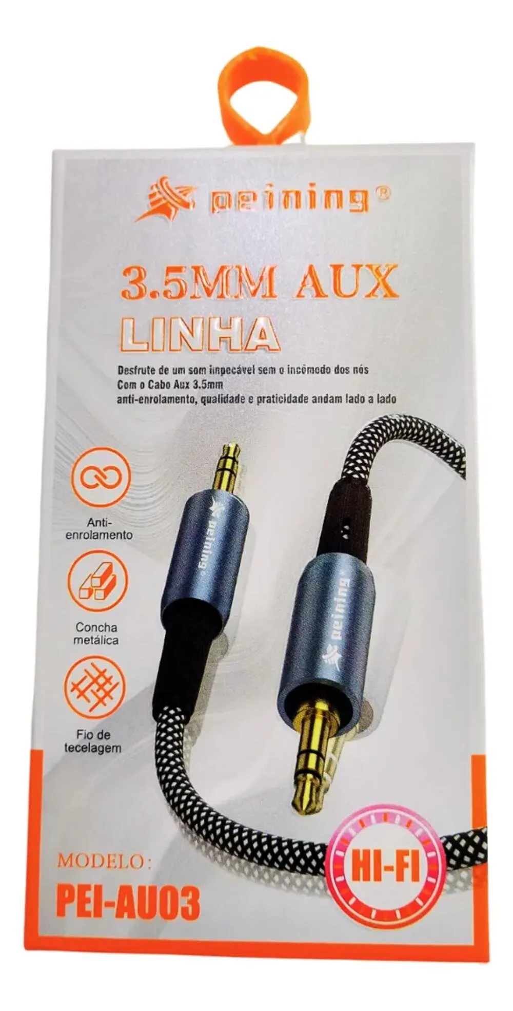 Cabo de áudio desenvolvido para a conexão entre dispositivos eletrônicos compatíveis que utilizam conector P2 (3,5 mm) em ambas as extremidades, permitindo a transmissão de sinal de áudio por meio de ligação direta.