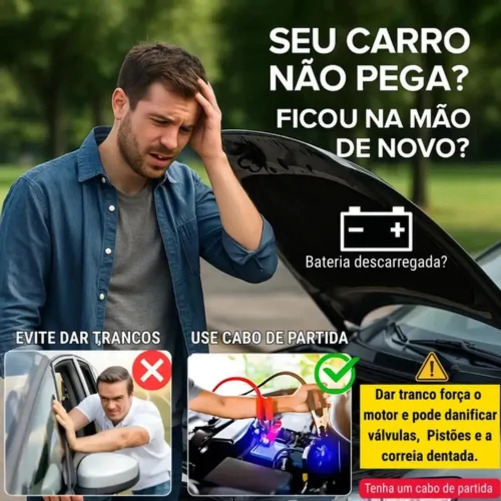 Possui 2 metros de comprimento, oferecendo maior flexibilidade no posicionamento dos veículos durante a transferência de carga. Suas garras tipo jacaré são reforçadas, proporcionando excelente fixação nos polos da bateria, reduzindo riscos de mau contato.