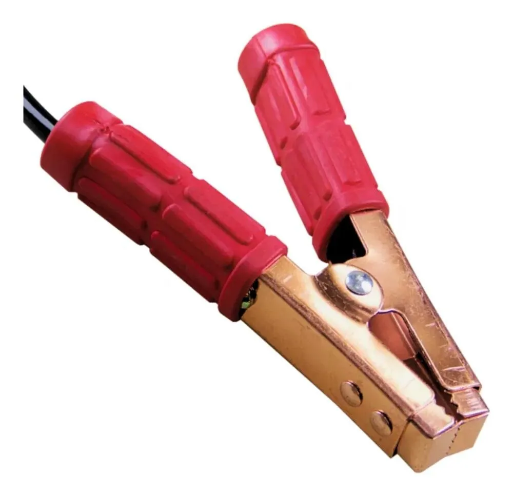 Possui 2,5 metros de comprimento, oferecendo maior alcance e facilidade de manuseio durante o uso. Suas garras metálicas com revestimento isolante proporcionam excelente fixação nos polos da bateria, reduzindo riscos de curto-circuito e aumentando a segurança da operação.