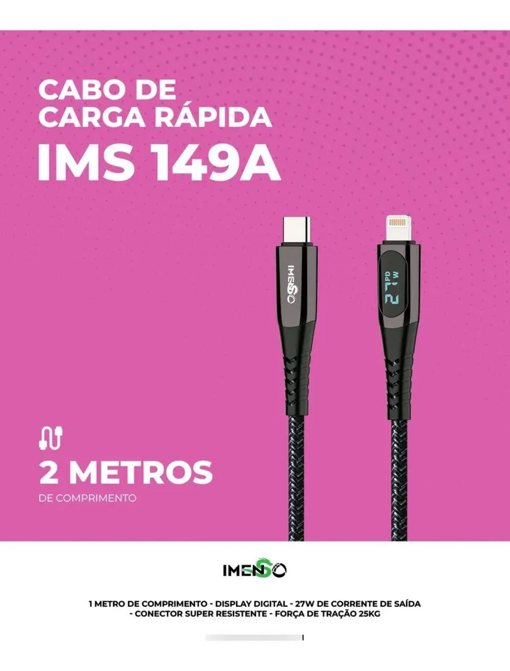 Cabo desenvolvido para carregamento e transferência de dados entre dispositivos compatíveis, com conexões USB-C x Lightning. Indicado para uso com smartphones e dispositivos Apple compatíveis, oferece praticidade e desempenho no uso diário. Pode ser utilizado com carregadores, fontes e dispositivos com saída USB-C, sendo ideal para aplicações residenciais ou pessoais.
