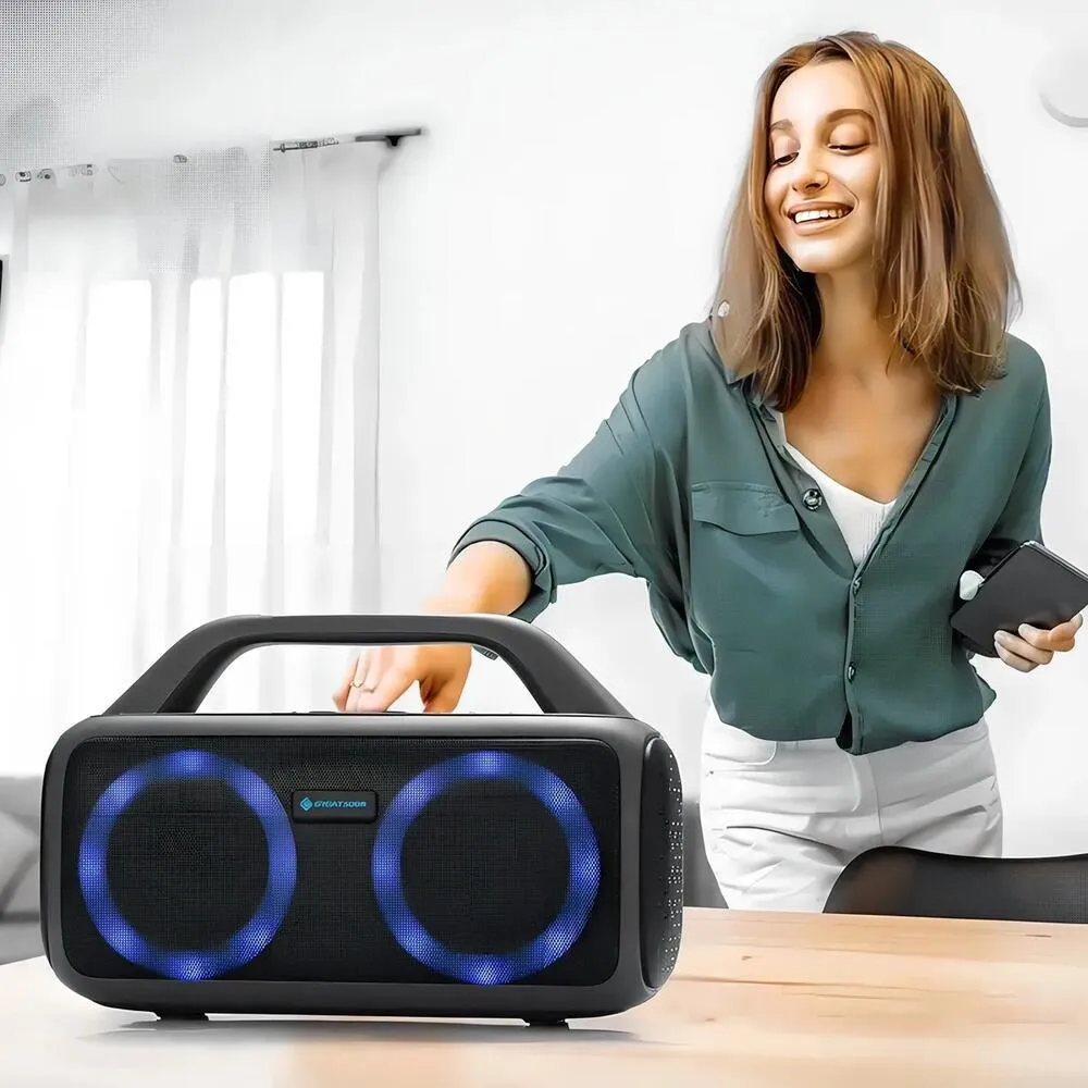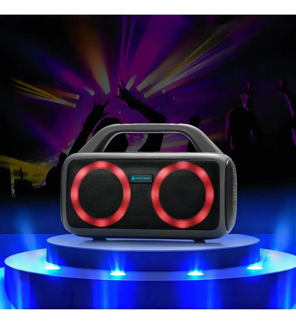 Compacta, portátil e com conexão Bluetooth eficiente, é perfeita para festas, reuniões e uso diário.