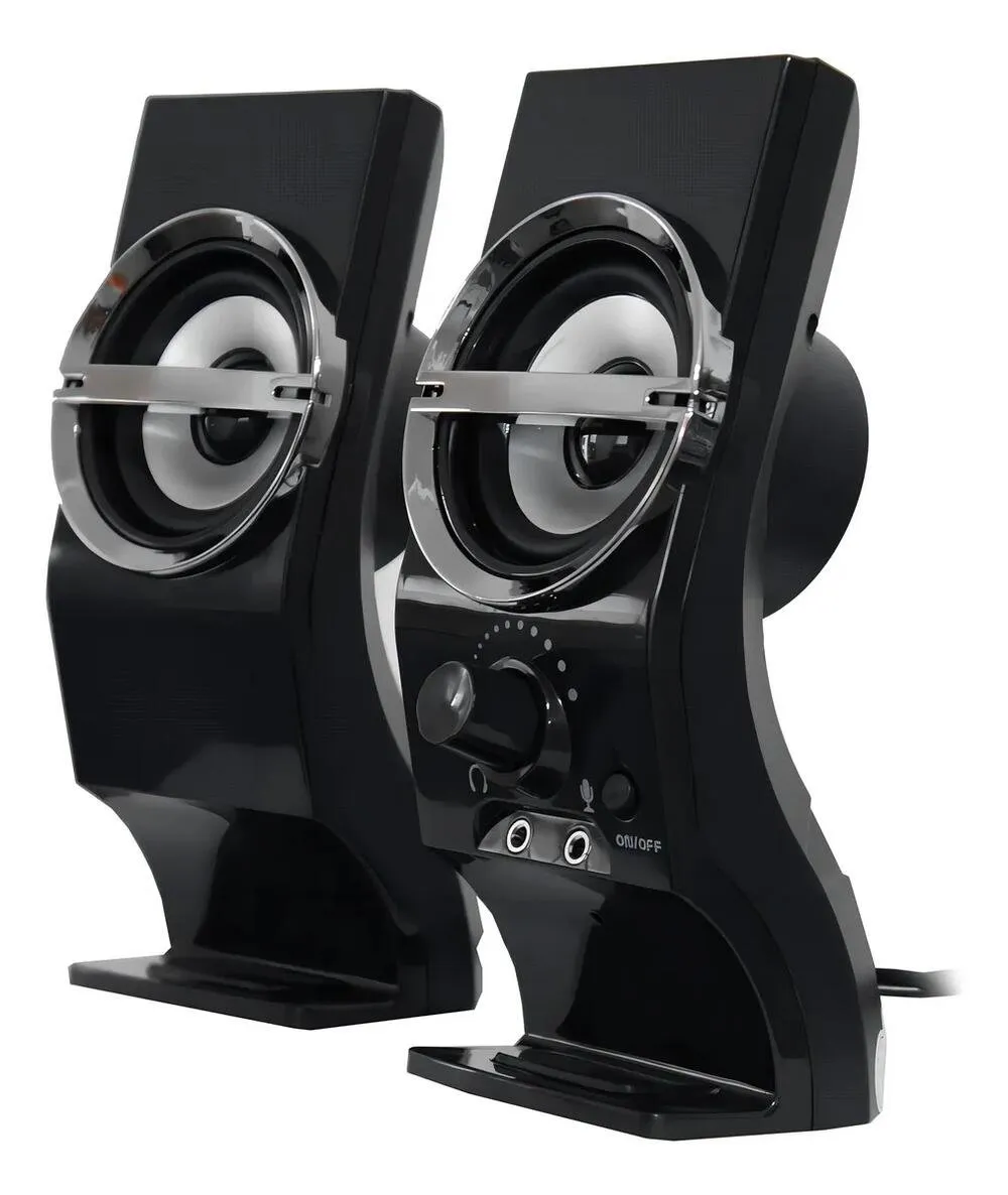 Possui alimentação via USB 5 V, conectores P2 de 3,5 mm compatíveis com a maioria dos dispositivos e um design compacto que combina com qualquer ambiente. Fácil de instalar, basta conectar o cabo USB para energia e o plugue P2 ao dispositivo de áudio.