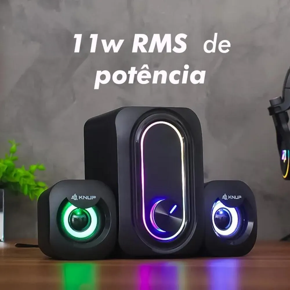 O sistema de áudio Knup KP-RO827 foi desenvolvido para quem busca qualidade sonora superior e praticidade no uso diário. Com potência total de 11 W RMS distribuída entre um subwoofer e dois alto-falantes satélites, este conjunto 2.1 entrega graves reforçados e som claro para músicas, filmes, jogos e vídeos.