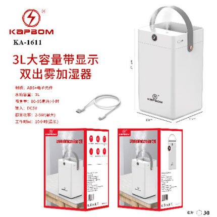 Umidificador de Ar 3L Kapbom KA-1611 com Alça Portátil e Saída Dupla de Névoa
