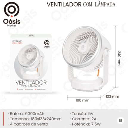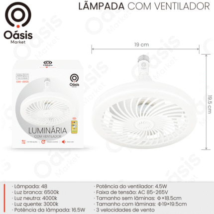 OIH-4955 Luminária com Ventilador – 3 Cores de Luz, 3 Velocidades de Vento