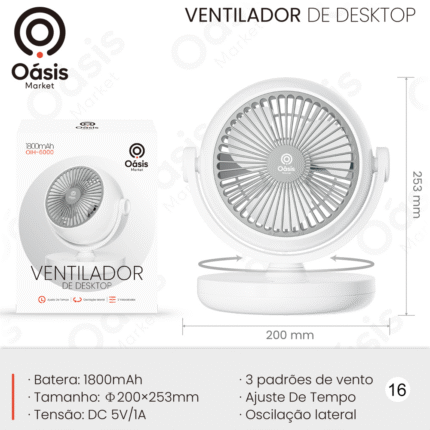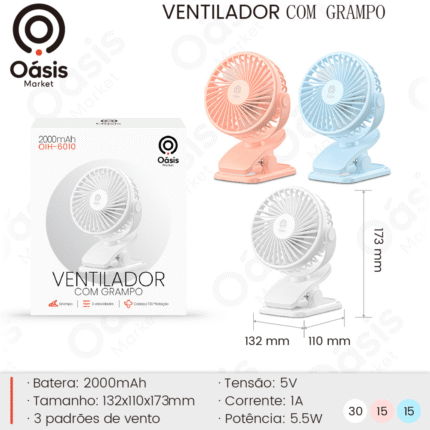 MINI VENTILADOR TELESCOPICO, BATERIA INTERNA RECARREGAVEL – ON-FA106