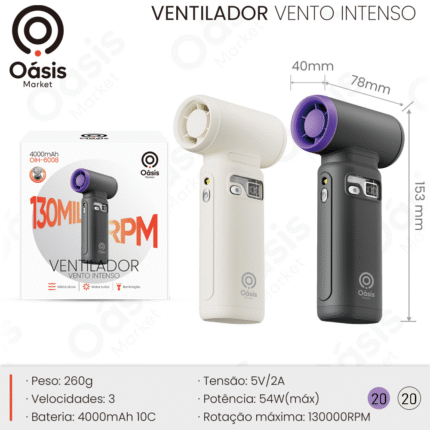 Ventilador Turbo Portátil Peining PEI-FS01 – Recarregável Dobrável e Silencioso