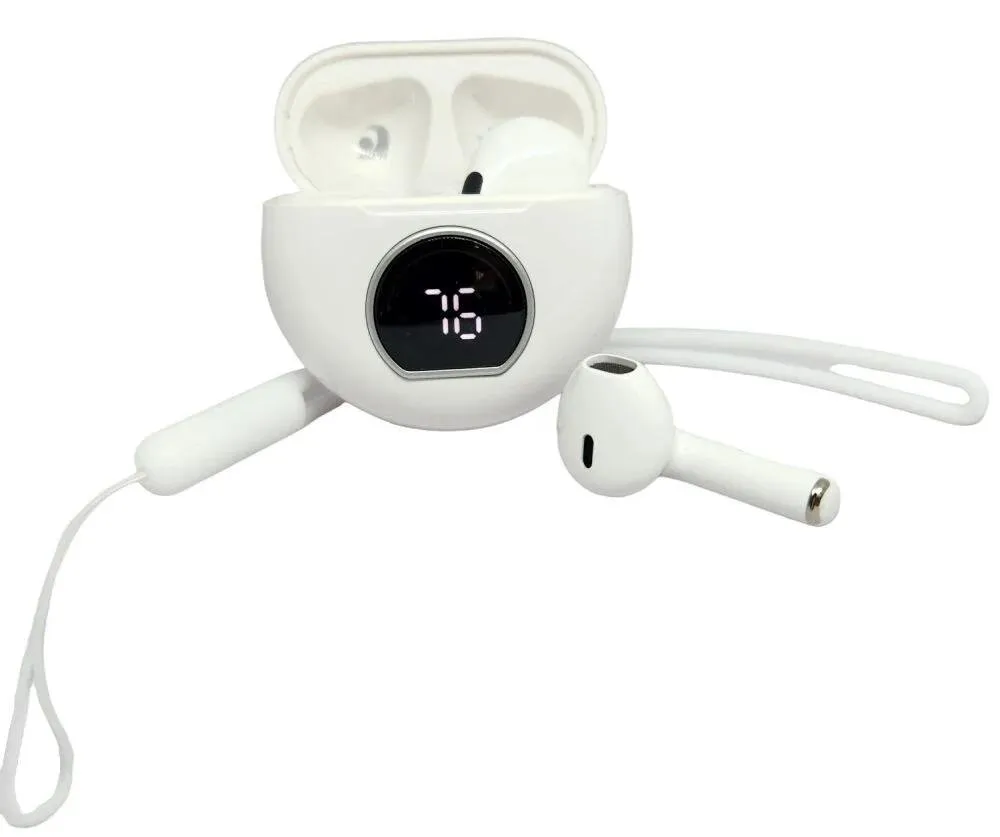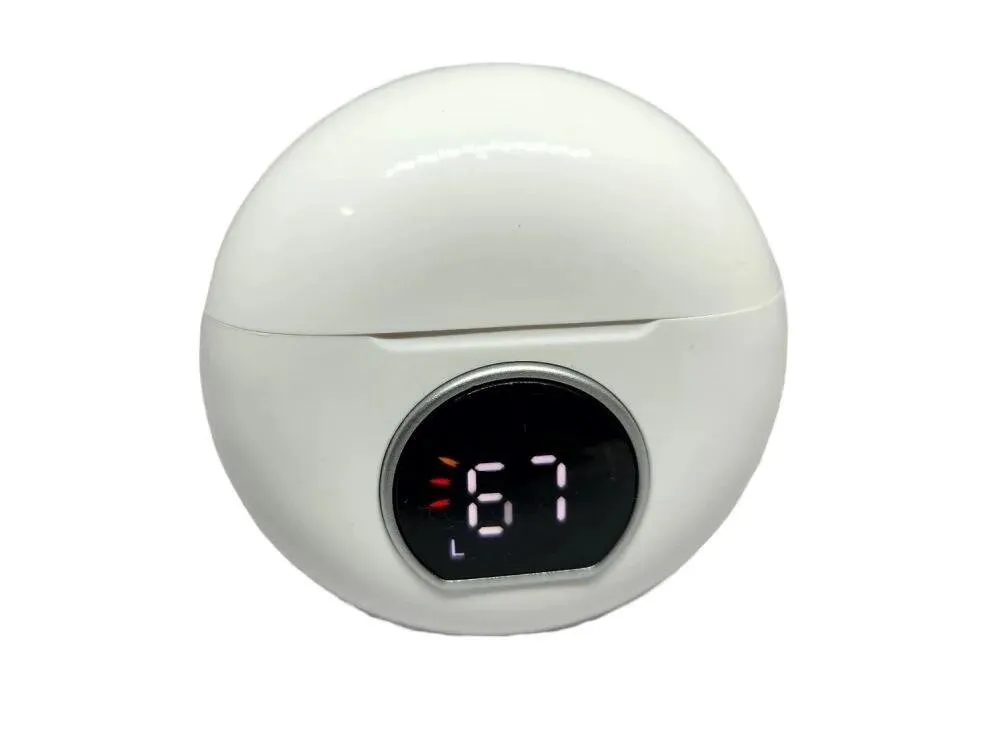 O estojo de carregamento possui display digital LED frontal, que indica a porcentagem exata da bateria da case, facilitando o controle da autonomia.