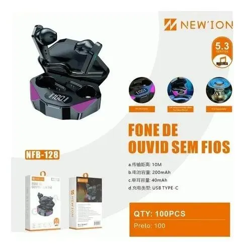 O Fone de Ouvido Bluetooth New Ion NFB-128 é um modelo TWS (True Wireless Stereo) desenvolvido para oferecer praticidade, conexão estável e boa qualidade sonora no uso diário.
