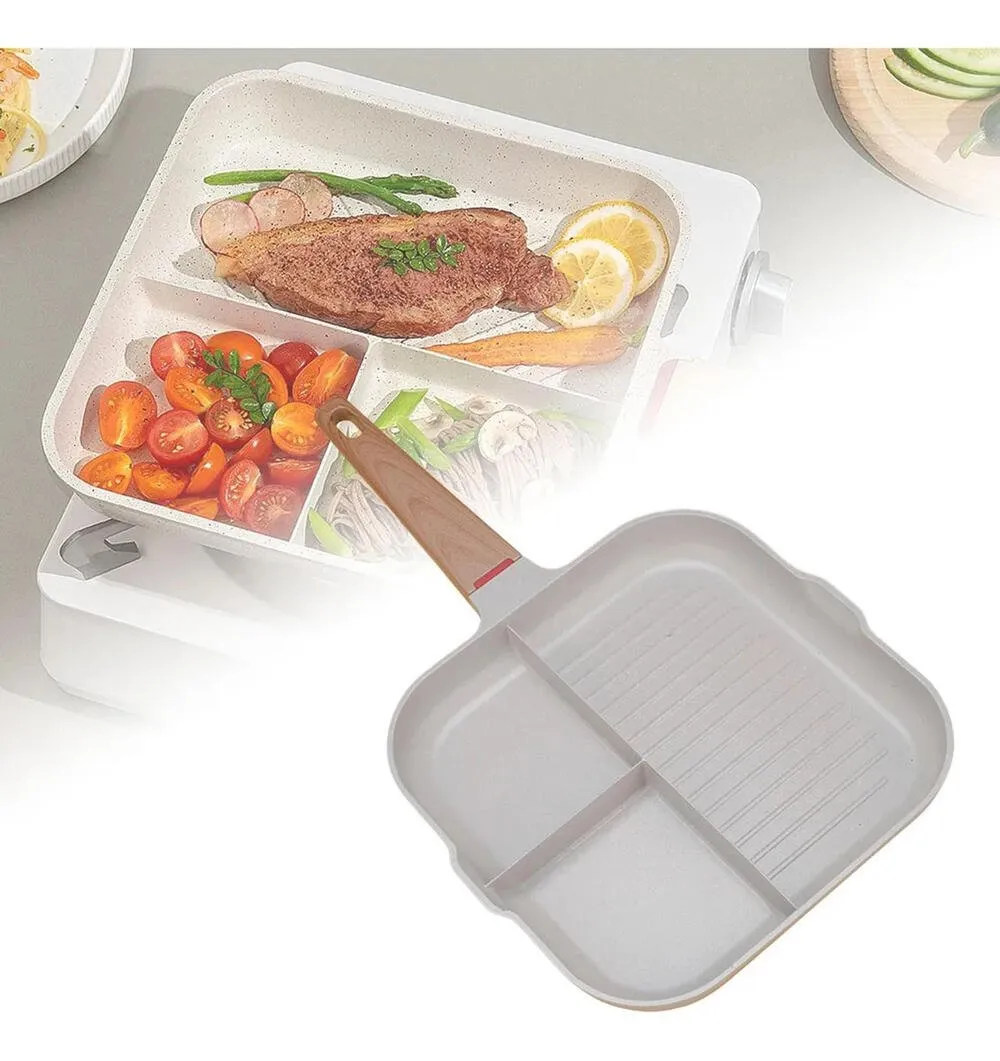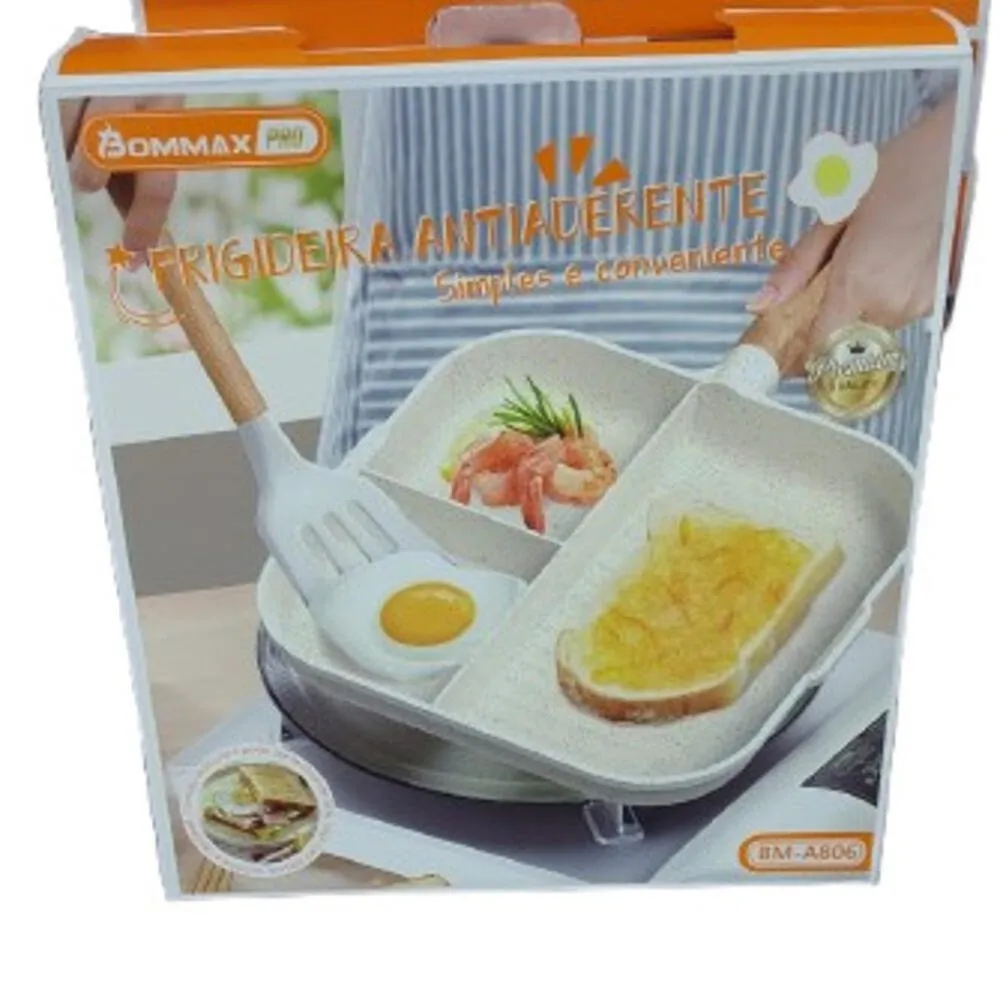 A Frigideira Antiaderente Bommax Pro BM-A806 é a solução ideal para quem busca praticidade, organização e eficiência na cozinha. Com design moderno e funcional, ela conta com três divisórias internas, perfeitas para preparar diferentes alimentos ao mesmo tempo, sem misturar sabores.