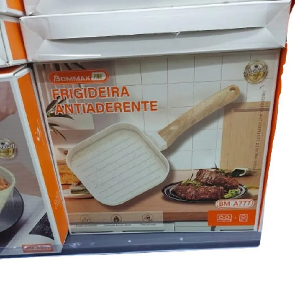 A Frigideira Antiaderente Bommax Pro BM-A777 é perfeita para quem busca praticidade, modernidade e eficiência na cozinha. Com formato quadrado e design clean, ela é ideal para grelhar carnes, legumes, ovos, sanduíches e muito mais com rapidez e sem grudar.