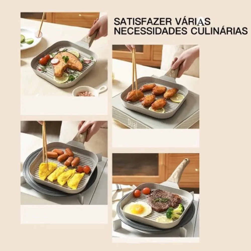 Seu cabo com textura amadeirada além de ergonômico, proporciona conforto e segurança no manuseio. É fácil de limpar e compatível com diversas fontes de calor.