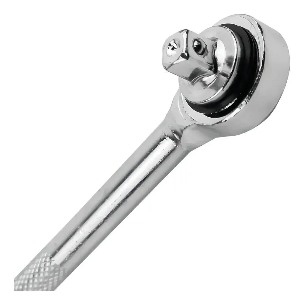 O kit conta com catraca reversível de 3/8”, soquetes métricos e em polegadas, extensores, adaptadores e chave giratória, permitindo trabalhar com diferentes tipos de parafusos e porcas com praticidade.