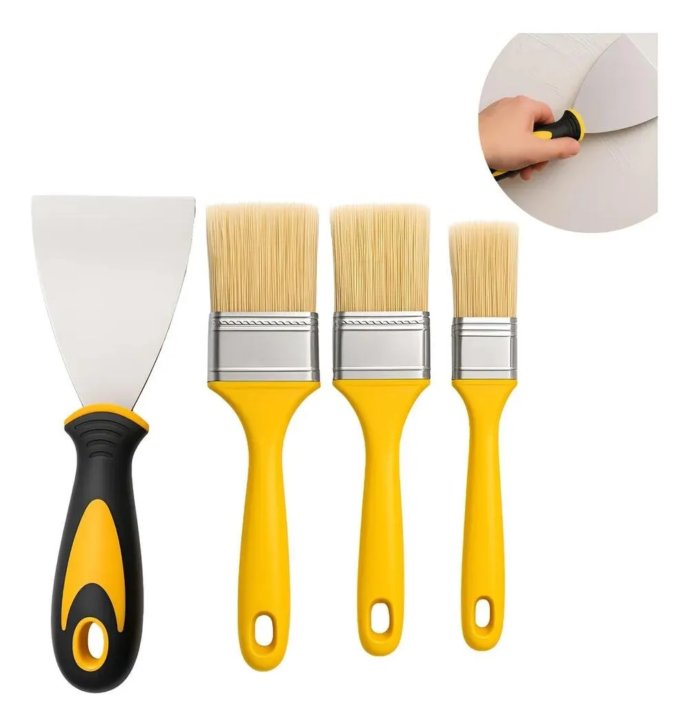 O Kit Espátulas e Pincéis para Pintura 4 Peças Bomvink BOM-3641 é um conjunto prático desenvolvido para auxiliar em trabalhos de pintura, aplicação de massa e acabamento em diversas superfícies.
