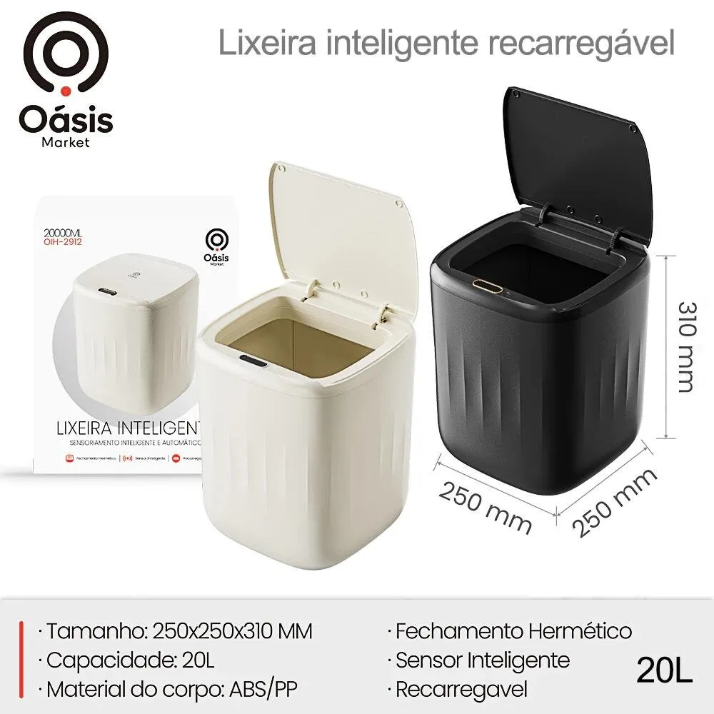 A Lixeira Inteligente Oasis Market OIH-2912 foi desenvolvida para oferecer mais praticidade e higiene no descarte de resíduos. Equipada com sensor infravermelho, permite abrir e fechar a tampa automaticamente apenas com a aproximação da mão, evitando contato direto com a lixeira.
