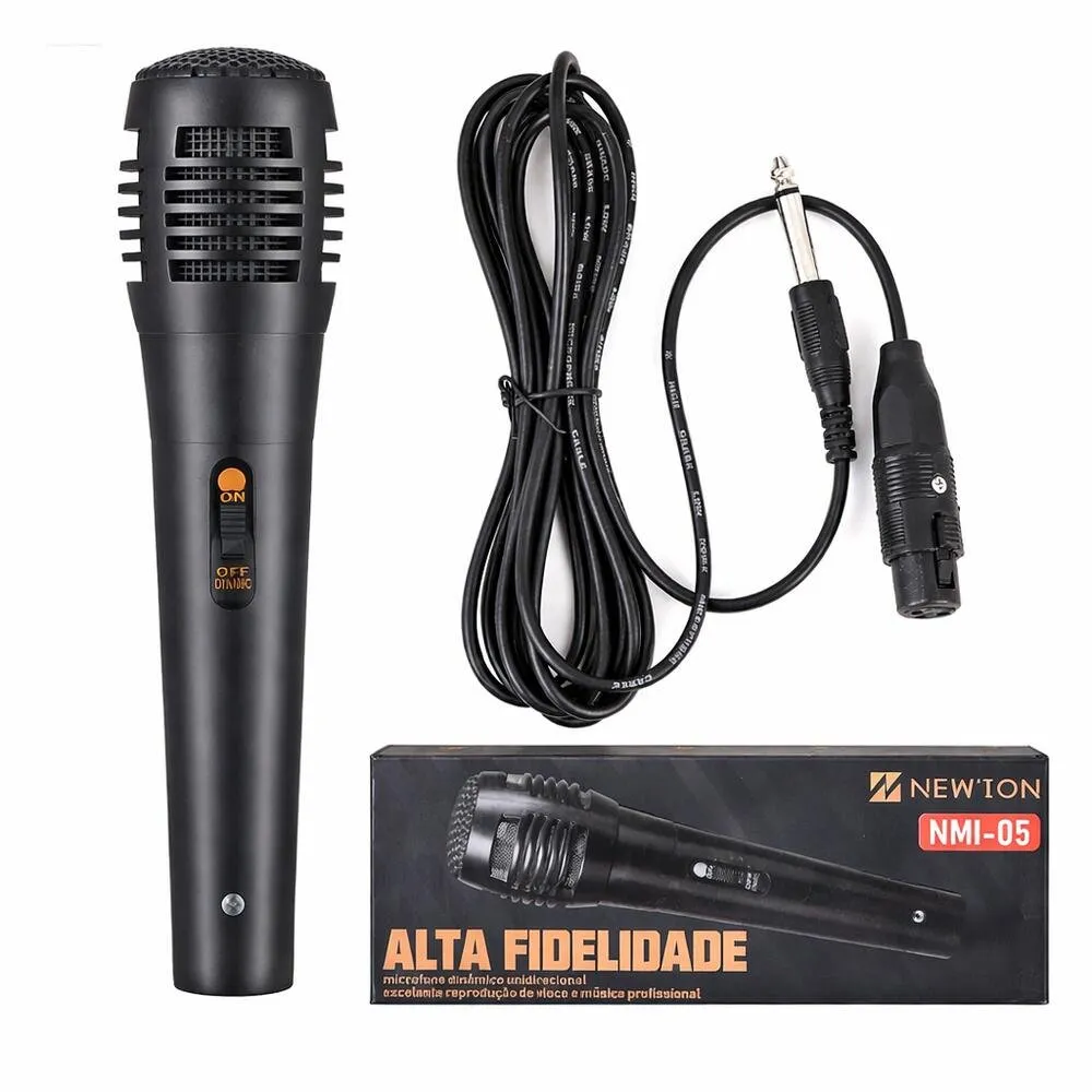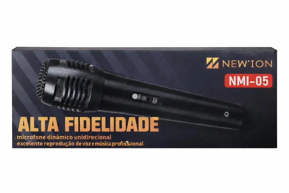 O Microfone New Ion NMI-05 é um modelo dinâmico desenvolvido para apresentações, karaokê, eventos, palestras e uso em palco.