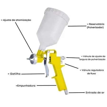 Seu design ergonômico facilita o manuseio e oferece maior controle durante o uso, contribuindo para melhor precisão na aplicação. O reservatório integrado permite armazenar a tinta com praticidade, tornando o processo de pintura mais rápido e organizado.