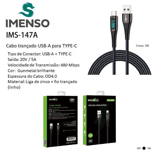CABO COM CONECTOR USB PARA TYPE-C IMS-147