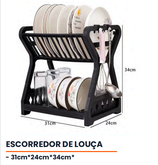 Organize sua pia com praticidade e estilo usando o Escorredor de Louças AC-50, modelo de 2 andares com capacidade para pratos, copos, tigelas e utensílios. Ideal para cozinhas com pouco espaço, ele otimiza o ambiente mantendo tudo em ordem.