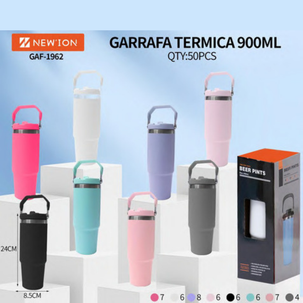 A Garrafa Térmica GAF-1962 une estilo, praticidade e excelente capacidade. Com 900ml, ela é ideal para quem busca hidratação duradoura no treino, no trabalho ou durante o dia inteiro.