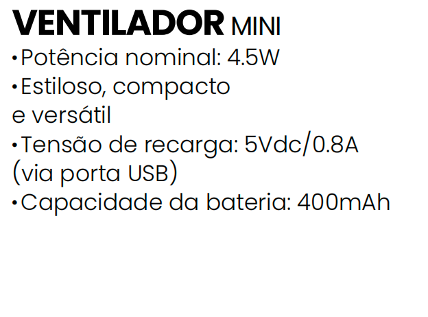 MINI VENTILADOR TELESCOPICO, BATERIA INTERNA RECARREGAVEL – ON-FA106