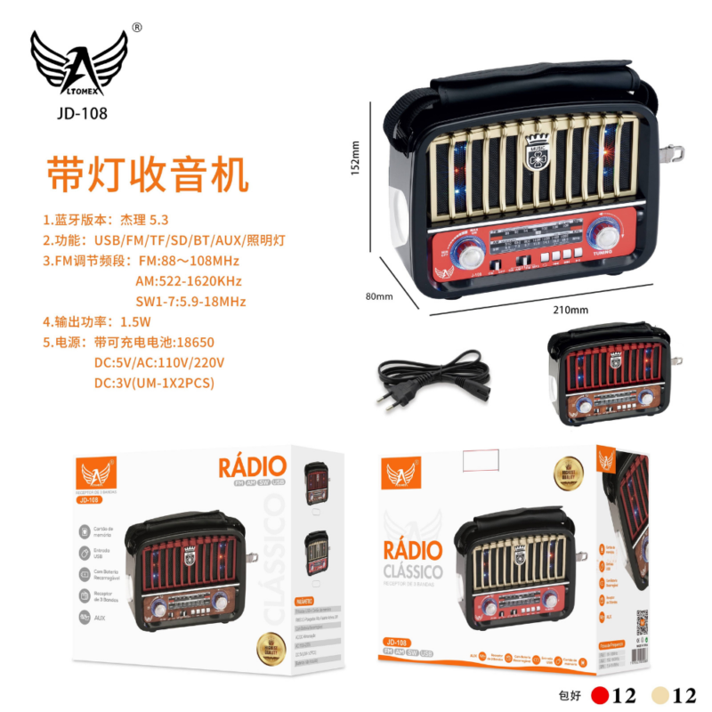 RADIO BT RETRO 9 BANDS COM PILHA RECARREGAVEL ALTOMEX AD-1088