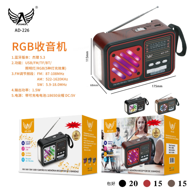 RADIO BT RETRO 9 BANDS COM PILHA RECARREGAVEL ALTOMEX AD-1088