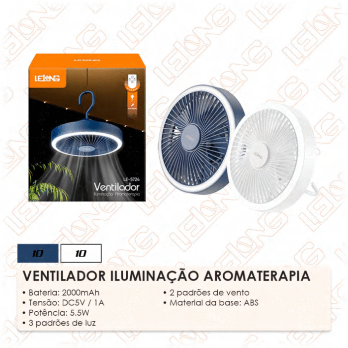 O Ventilador LeLong LE-5724 é a combinação perfeita de praticidade e conforto para o seu dia a dia. Além de ventilar, ele conta com iluminação LED ajustável e função de aromaterapia, proporcionando um ambiente mais agradável e relaxante. Compacto, portátil e com bateria recarregável, pode ser utilizado em casa, no escritório, em viagens ou até mesmo em áreas externas.