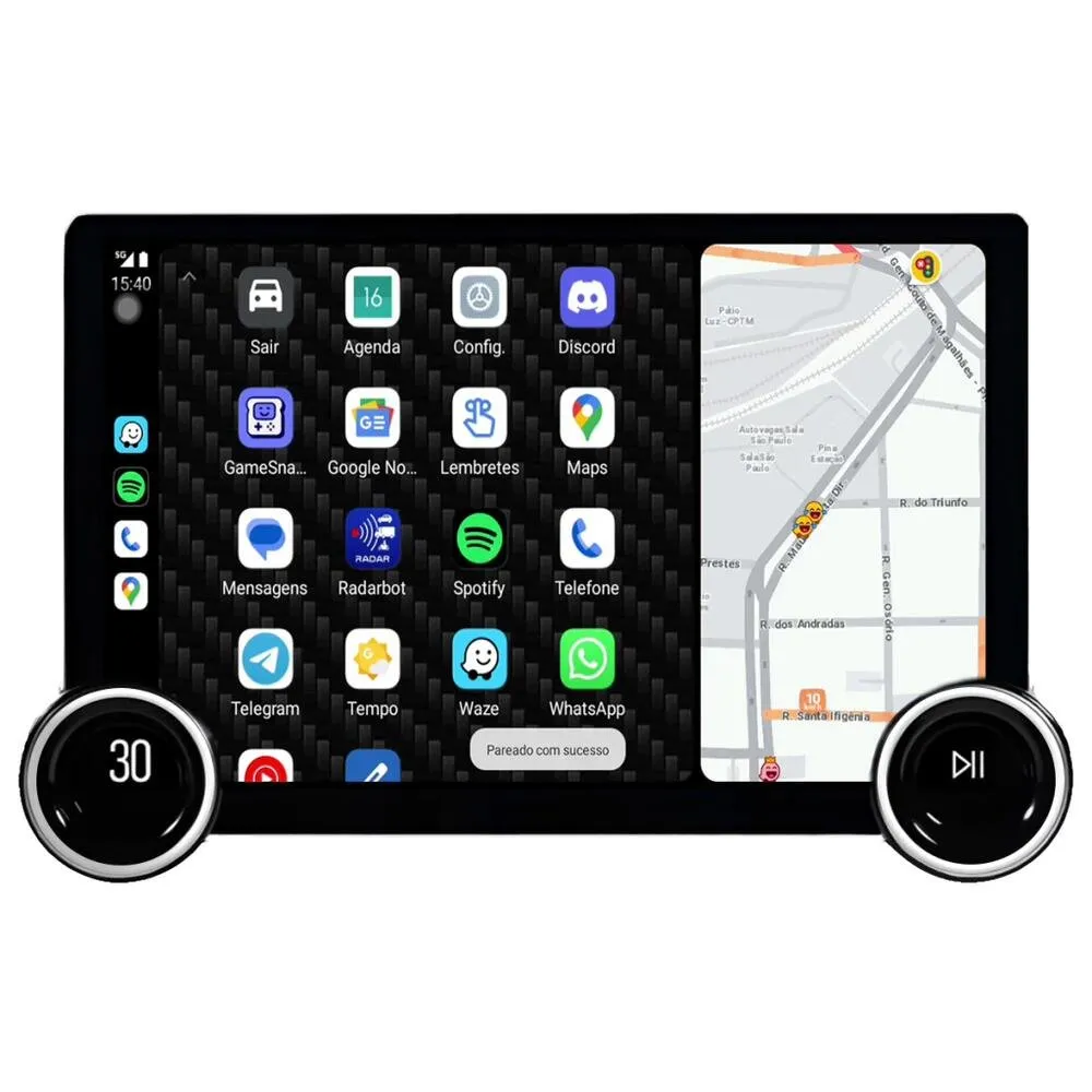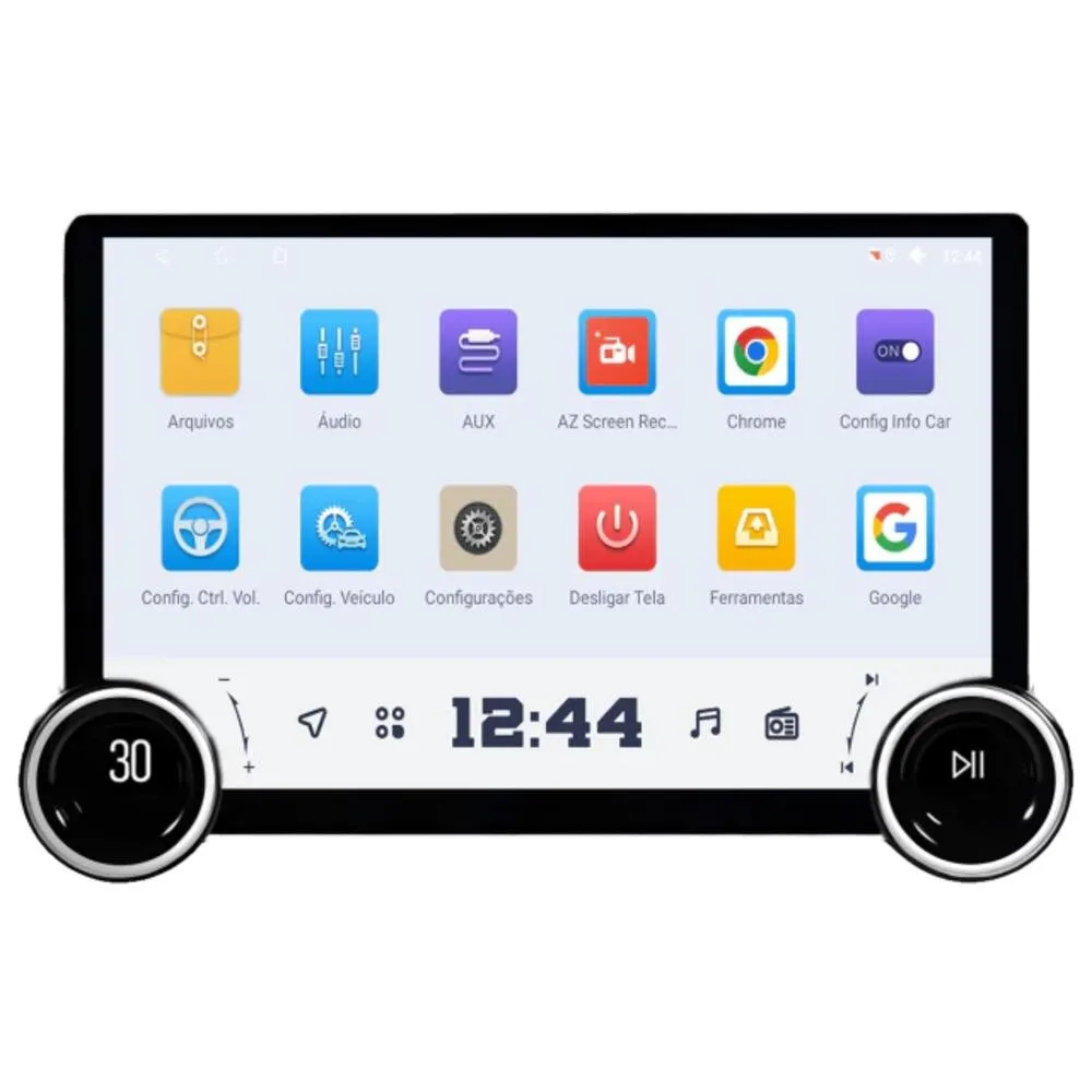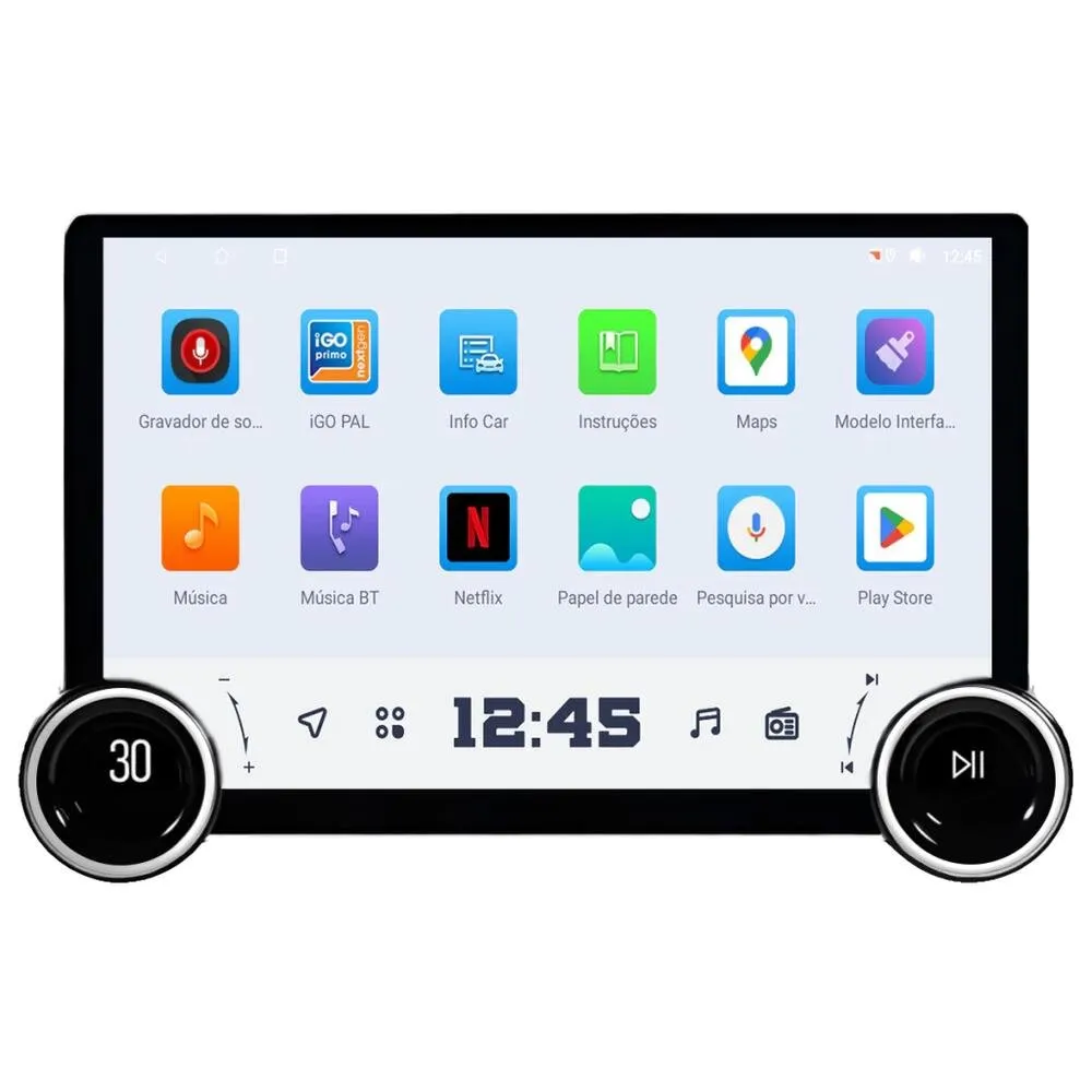 Central multimídia automotiva com sistema Android 14, tela QLED de alta resolução 2K e toque sensível, equipada com processador Octa-Core 1.6 GHz, podendo chegar a 6GB de RAM e 128GB de armazenamento (variável conforme versão). Possui conectividade Bluetooth 5.0, Wi-Fi, GPS integrado, espelhamento sem fio Android/iOS, suporte a comandos de voz, entradas USB, compatibilidade com câmera de ré e reprodução completa de áudio e vídeo, proporcionando alta performance e modernização do painel do veículo.
