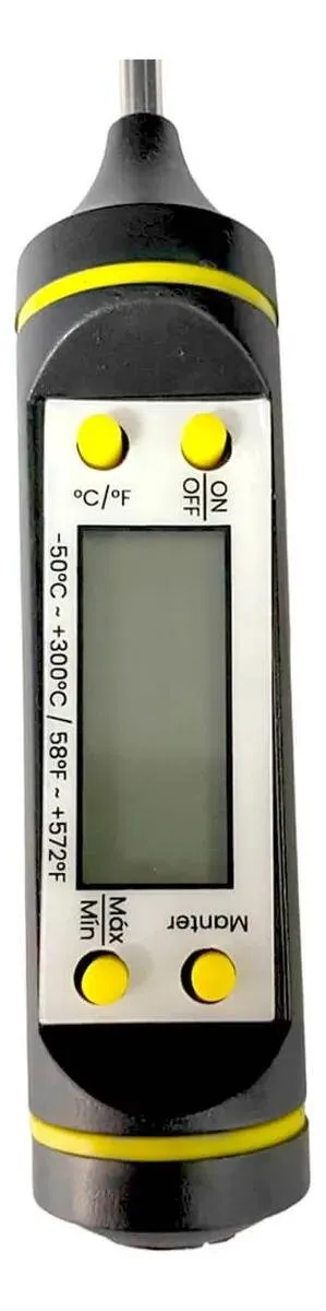 Possui visor digital de fácil leitura, permitindo acompanhar a temperatura em tempo real durante o cozimento ou resfriamento. Sua ampla faixa de medição, que vai de -50 °C a 300 °C, atende tanto preparos frios quanto altas temperaturas, tornando-o extremamente versátil para uso doméstico ou profissional.
