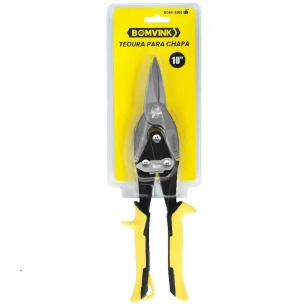 A Tesoura para Cortar Chapas BOM-3305 é ideal para cortes retos precisos em chapas metálicas, sendo amplamente utilizada em funilarias, serralherias, oficinas, construção civil e trabalhos de manutenção em geral. Seu design tipo aviação proporciona maior alavancagem, controle e eficiência durante o corte.