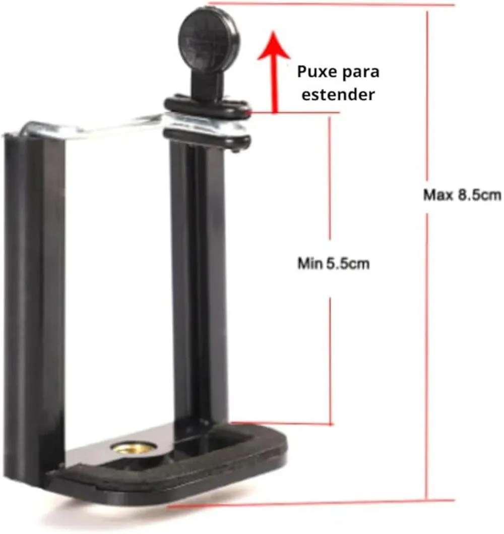 Conta com cabeça articulada, nível de bolha para melhor alinhamento e suporte para smartphone, garantindo estabilidade e versatilidade no uso. Seu design dobrável facilita o armazenamento, sendo indicado tanto para uso doméstico quanto profissional.