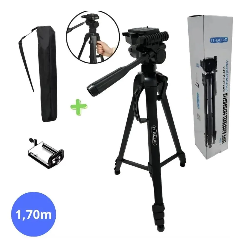 O Tripé Profissional para Celular e Câmera é ideal para quem busca estabilidade e praticidade em fotos, vídeos, lives e gravações profissionais. Possui estrutura resistente, cabeça articulada, nível de bolha para alinhamento preciso e acompanha suporte para celular e estojo para transporte.