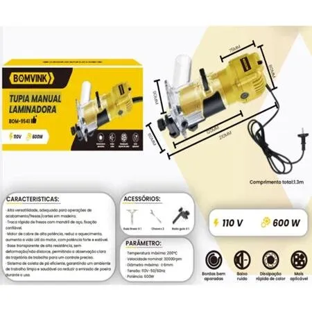 A Tupia Manual Laminadora Bomvink BOM-9541 foi desenvolvida para proporcionar precisão, controle e acabamento de qualidade em trabalhos de marcenaria e carpintaria. Indicada para rebaixos, cortes, chanfrados, acabamentos em bordas e trabalhos detalhados em madeira, MDF e materiais semelhantes.
