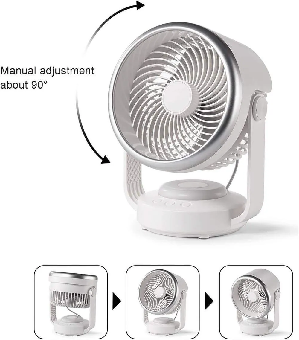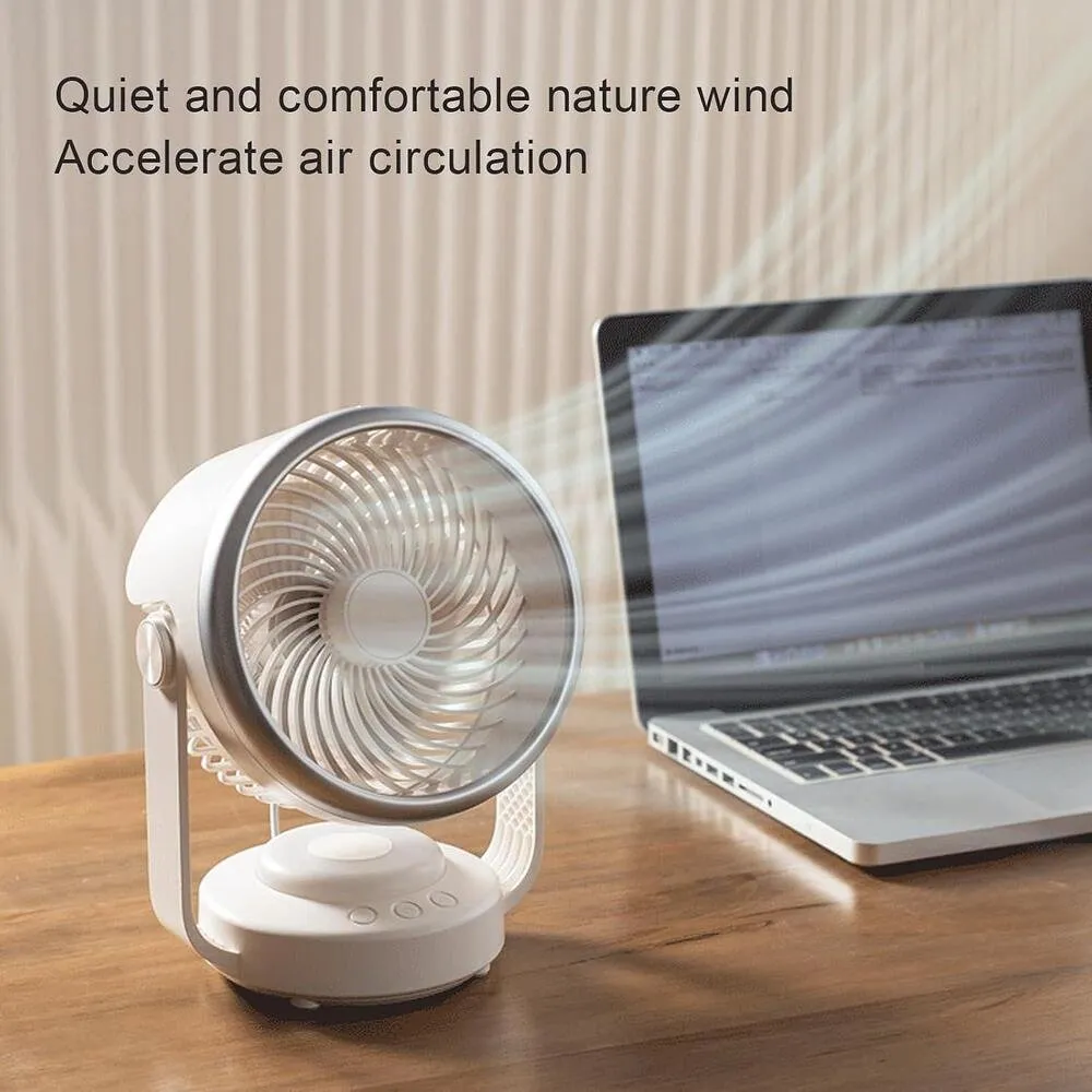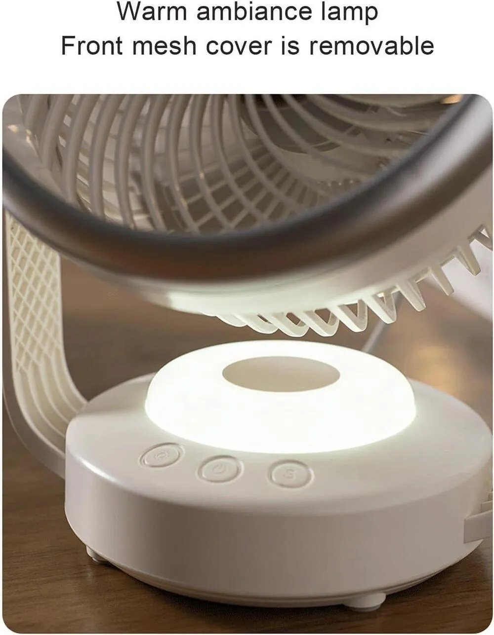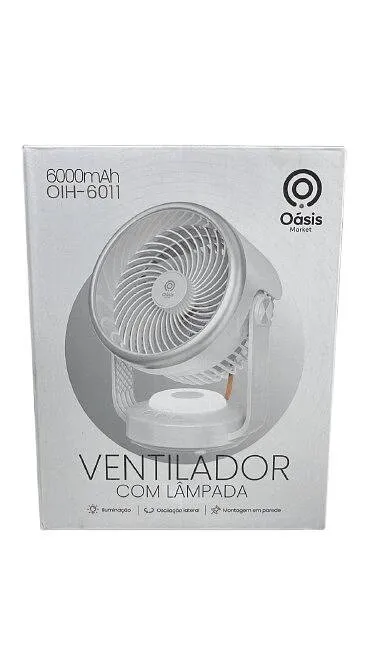 Ventilador elétrico mini, de uso pessoal, destinado à ventilação leve de ambientes internos, com lâmpada integrada para iluminação auxiliar. Desenvolvido para uso individual, ideal para mesas, bancadas ou apoio, não indicado para aplicações industriais ou profissionais.