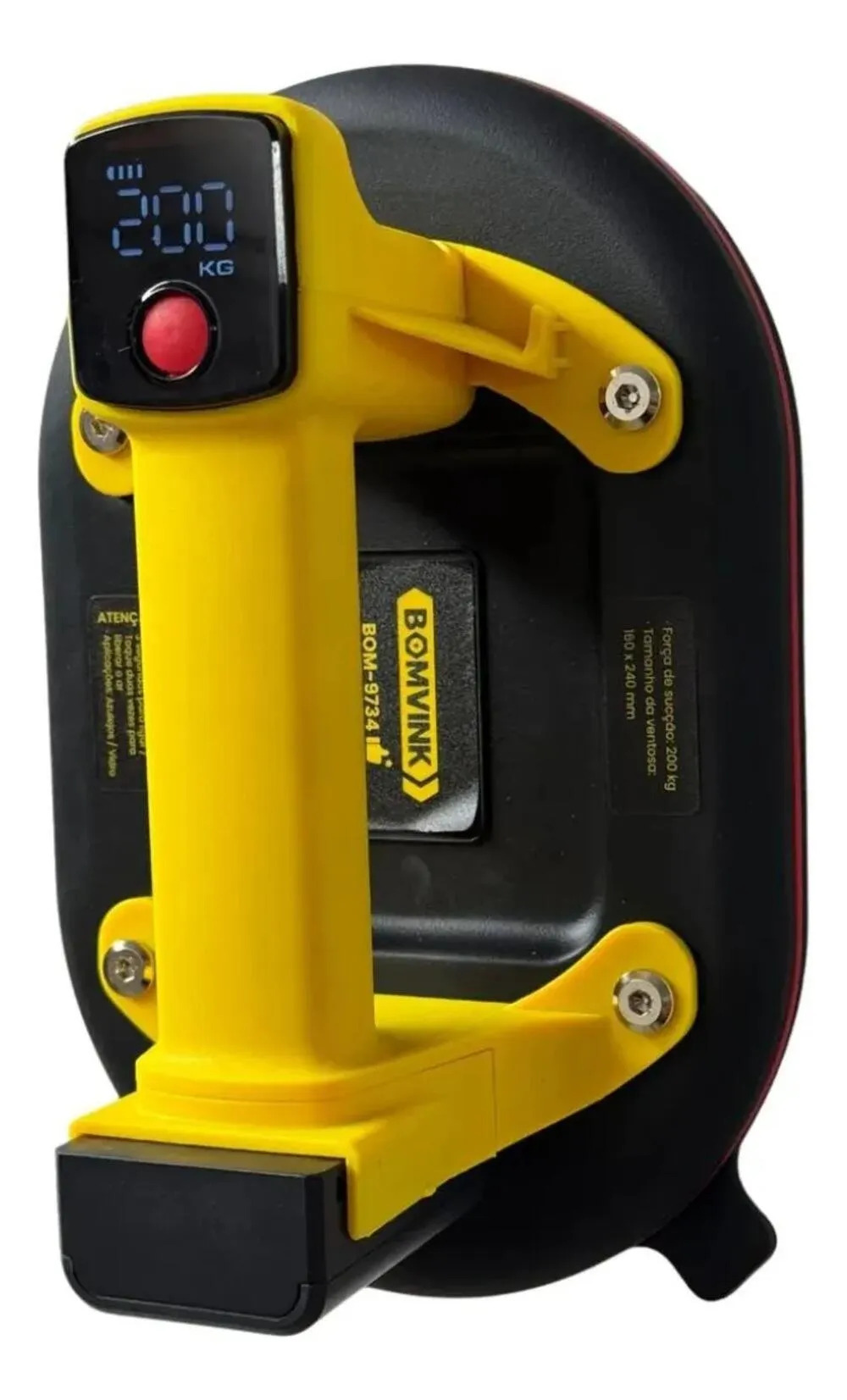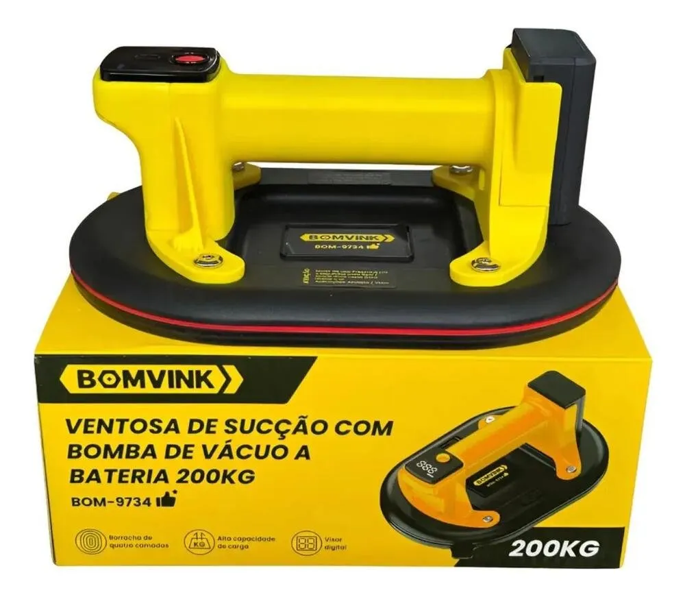 A Ventosa de Sucção com Bomba de Vácuo a Bateria Bomvink BOM-9734 é uma ferramenta profissional desenvolvida para elevação, transporte e instalação segura de porcelanatos grandes, vidros, granitos, mármores e superfícies lisas.